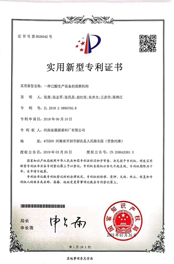 河南省康源香料廠有限公司坐落于尉氏人民路東段(賈魯河灘),是生產經營食用香精香料、食品添加劑、精細化工產品生產銷售的企業,統一社會信用代碼:91410223799151685B,公司成立于1997年,注冊資金850萬元,廠區占地面積14300平方米,廠房建筑面積13600平方米,現有企業員工186人,其中擁有高、中級職稱技術人員48人,主要生產銷售產品有:食品添加劑(己酸乙酯、乳酸乙酯、丙酸乙酯、異丁酸乙酯、丁酸乙酯、 乙酸乙酯、庚酸乙酯乙酸異戊酯、辛酸乙酯、乙酸丙酯、苯乙醇、2,3丁二酮、冰乙酸(低壓羰基化法)、乳酸、己酸、丁酸、丙酸、乙縮醛、甘油、己酸烯丙酯、庚酸烯丙酯),食品用香精(食品用香精-液體),復配食品添加劑(復配酒類增味劑)實際綜合生產能力達到3萬噸/年,固定資產2810萬元,總資產13200萬元。